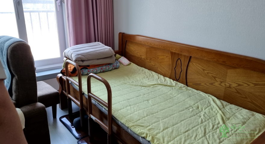 침대 옆에 설치한 안전 손잡이의