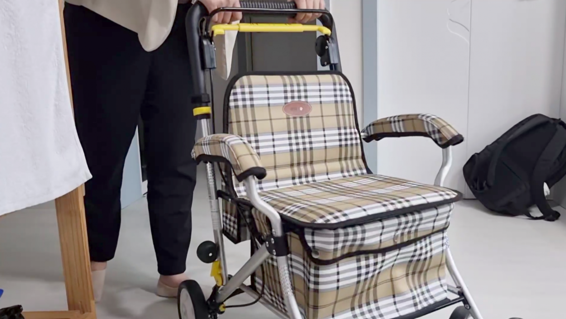 노인용 보행기를 이용하고 계셨어요.