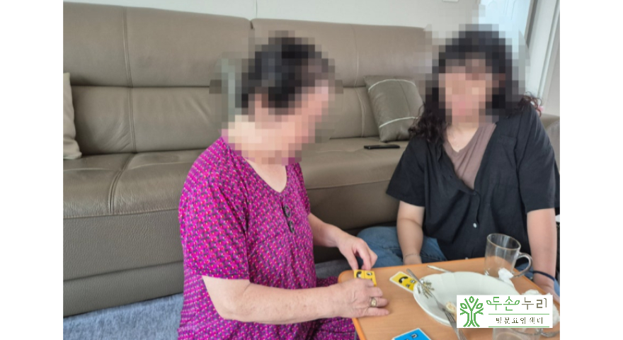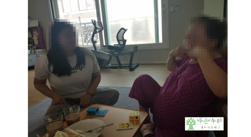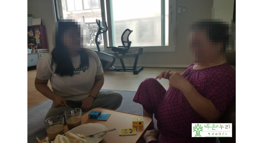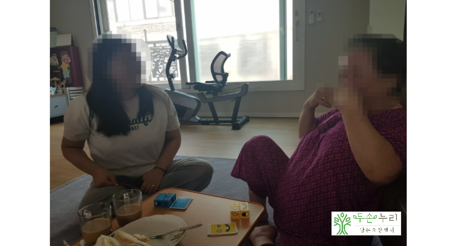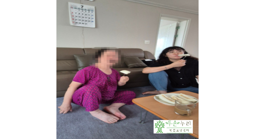 요양보호사님이 내어주신 간식을 함께 나눠 먹으며